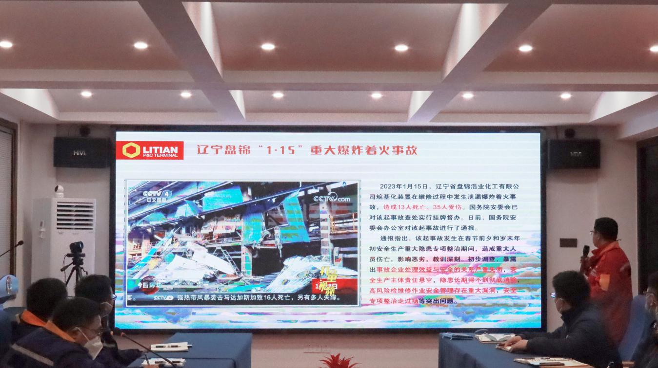 2月2日,麗天碼頭黨支部組織召開“紅色夜?!钡?課(總第100課),深入學(xué)習(xí)傳達(dá)黃宏亮董事長(zhǎng)在海企集團(tuán)2022年度總結(jié)大會(huì)和麗天碼頭年度總結(jié)暨表彰大會(huì)上的講話。會(huì)議由黨支部書記、董事長(zhǎng)、總經(jīng)理蔡月主持,黨支部的黨員、發(fā)展對(duì)象和積極分子等45人參加學(xué)習(xí)。